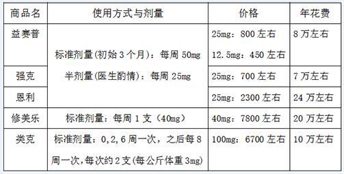 生物制剂费用一览表